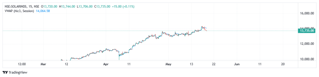 | SOLAR INDUSTRIES | 13,809.65 (-1.46%) | 13,806.00 (-1.56%) |